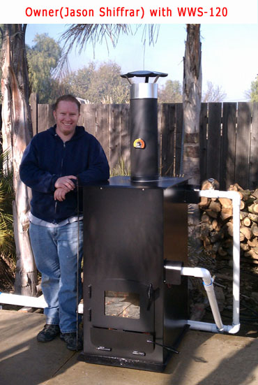 All heaters are tankless. Your pool pump pushes a continuous flow of water through the stainless steel heat exchanger, while the fire burns through the pipes in the top of the heater, above the firebox, heating the water. +++NOTE+++ WATER JACKET type pool heaters have a lot of problems, we have tried many desings like this in the past and none of them are reliable or repairable, you can't take them apart to clean or fix them and anyone who makes them can not warranty them. Our design & quality is a 20+ year product. Our model # is the amount (in feet) of stainless steel pipe in the heat exchanger. The more pipe you have, the more efficient the heater is, the less wood you burn and the faster you heat the pool because the water comes out of the stove hotter. (If you have a big pool and need a powerful heater, we have it) These 2 pictures are very close to proportional in size, showing the Extra Large being 9" taller. |